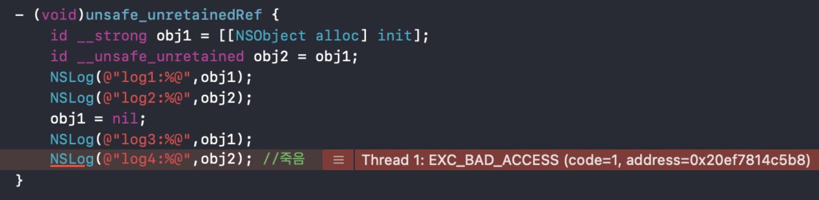 __unsafe_unretained 결과