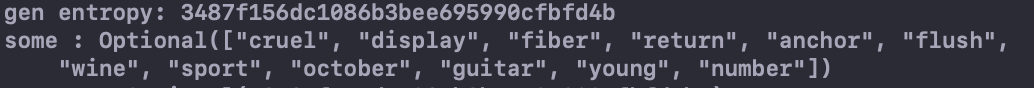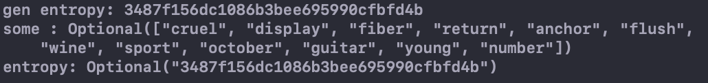 let checksumData = checksum[0 ..< (checksumBits + 7)/8 ] // 2. 가장 앞의 32비트를 체크썸으로 만들어준다.