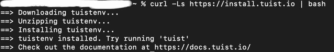 설정하고 싶은 경로로 이동해 아래 명령어를 사용해 Tuist를 설정해준다. Install과 init은 한번만 실행시켜주면 된다.